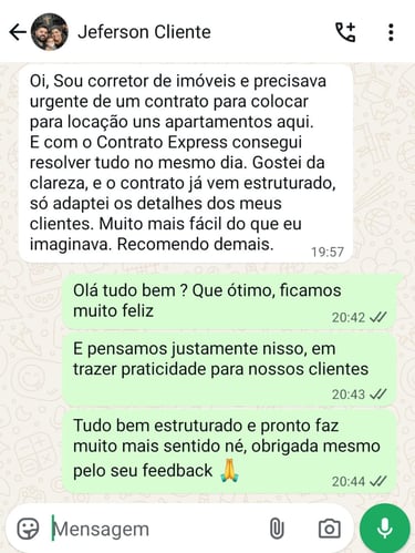 Veja o que pessoas que adquiriram o pacote Contrato Express falam.